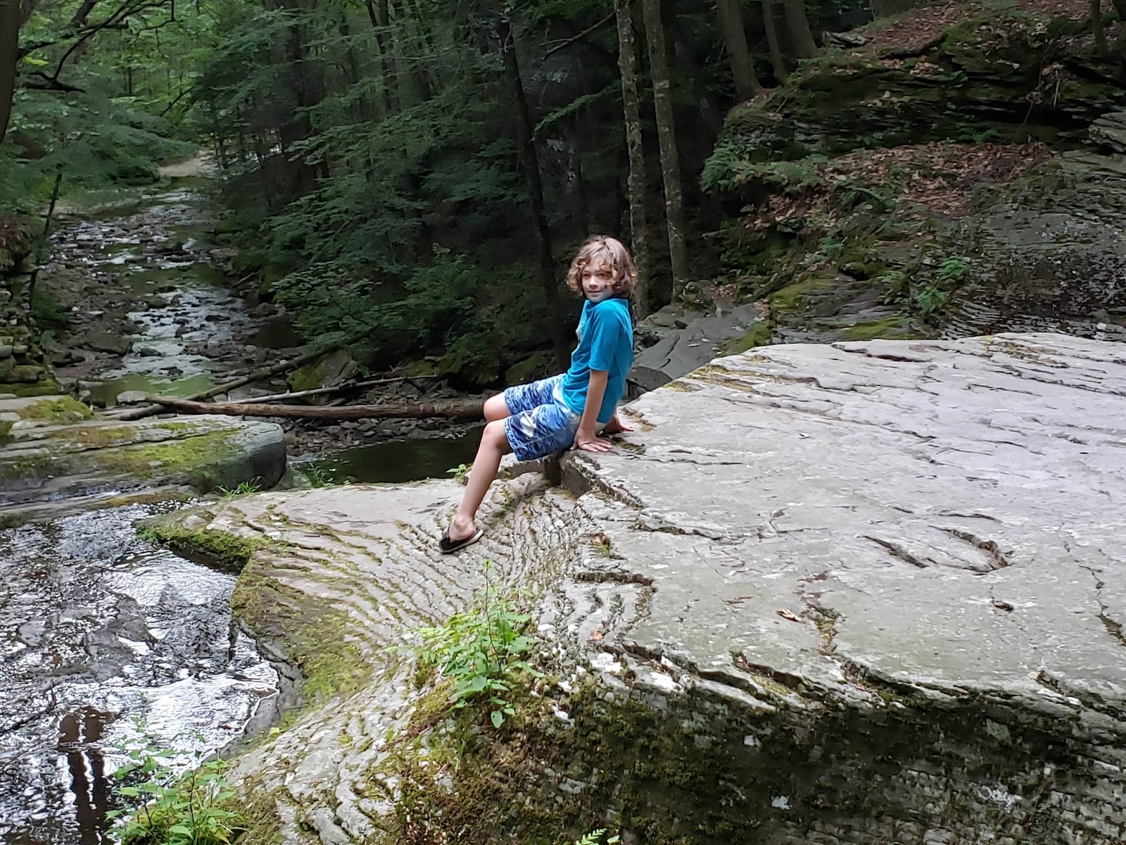 I thought that was the end of the camping season for my wife, but she knows how much it means to me and she loves the adventure as much as I do. So she picked another place the next day and we were off. This time car camping, but without any luxuries. We found a place that was nice and out in the middle of nowhere for us and we went. Once there we headed off to a swimming hole (Sullivan Falls) that we never knew about and it was amazing. The water was very cold and I was very nervous having the kids just wandering around the slippery rocks, but they were enjoying themselves and to me, it has to be most important thing. No one got hurt and they were having a blast. No electronics, no distractions, just mother nature's playground. It was great. At the end of a dirt road and we were there. Swimming holes, water falls, cool rock features, it had it all. The only downside was we didn't get there early enough and the daylight started to fade. We grabbed takeout at a local bar and headed back to camp. Set up the tent, got a fire going and had a great dinner. Kids were pooped and so were we.